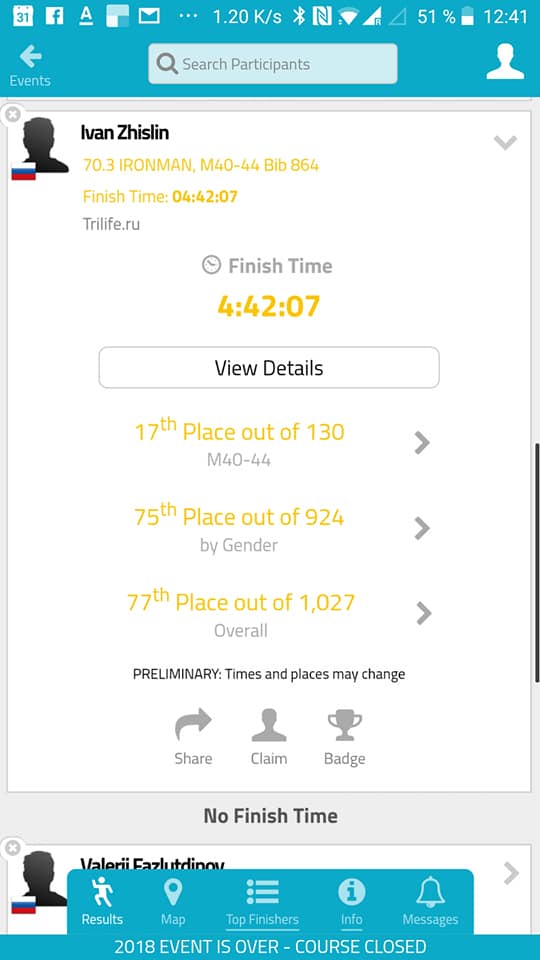 В целом улучшил личник на 20 минут, и научился на этом старте быть внимательнее к мелочам. Историю про гидрокостюм напишу отдельно.