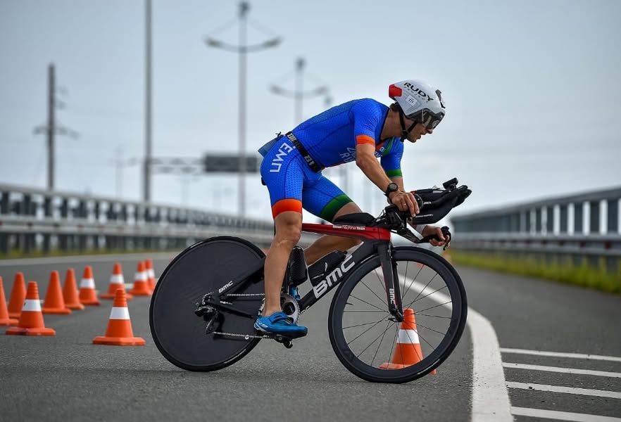 - Велоэтап - просто не пошло все сразу, к 20-му км удерживал плановую мощность, но уже через силу и хотелось сойти. Вообще потом сойти хотелось практически каждую минуту этой гонки. Мощность держал на зубах, небольшие подъемы ехал стоя, прибавки скорости оно не давало, но пытался разработаться. Средняя мощность неуклонно падала, от плановых 220 скатился до 198 средней. На съезде с трассы меня обогнал "эстафетчик", до Т2 ехал за ним, стараясь не отстать более чем на 50 метров. Доехал на пределе.