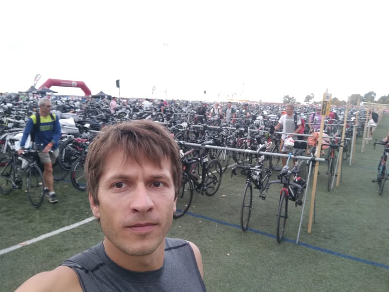 Наконец-то хорошо отработал весь этап плавания. Первый раз за все свои старты. Начиная с первой олимпийки каждый раз это было какое-то преодоление и борьба за выживание. Встал в конце коридора из 50 минут и плыл как все соседи (оптимистов много).
